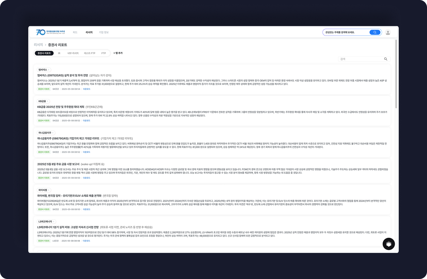 Supports investment analysis and decision-making through real-time data analysis/summary based on LLMs. (e.g., National Pension Service, Korea Securities Finance Corporation)