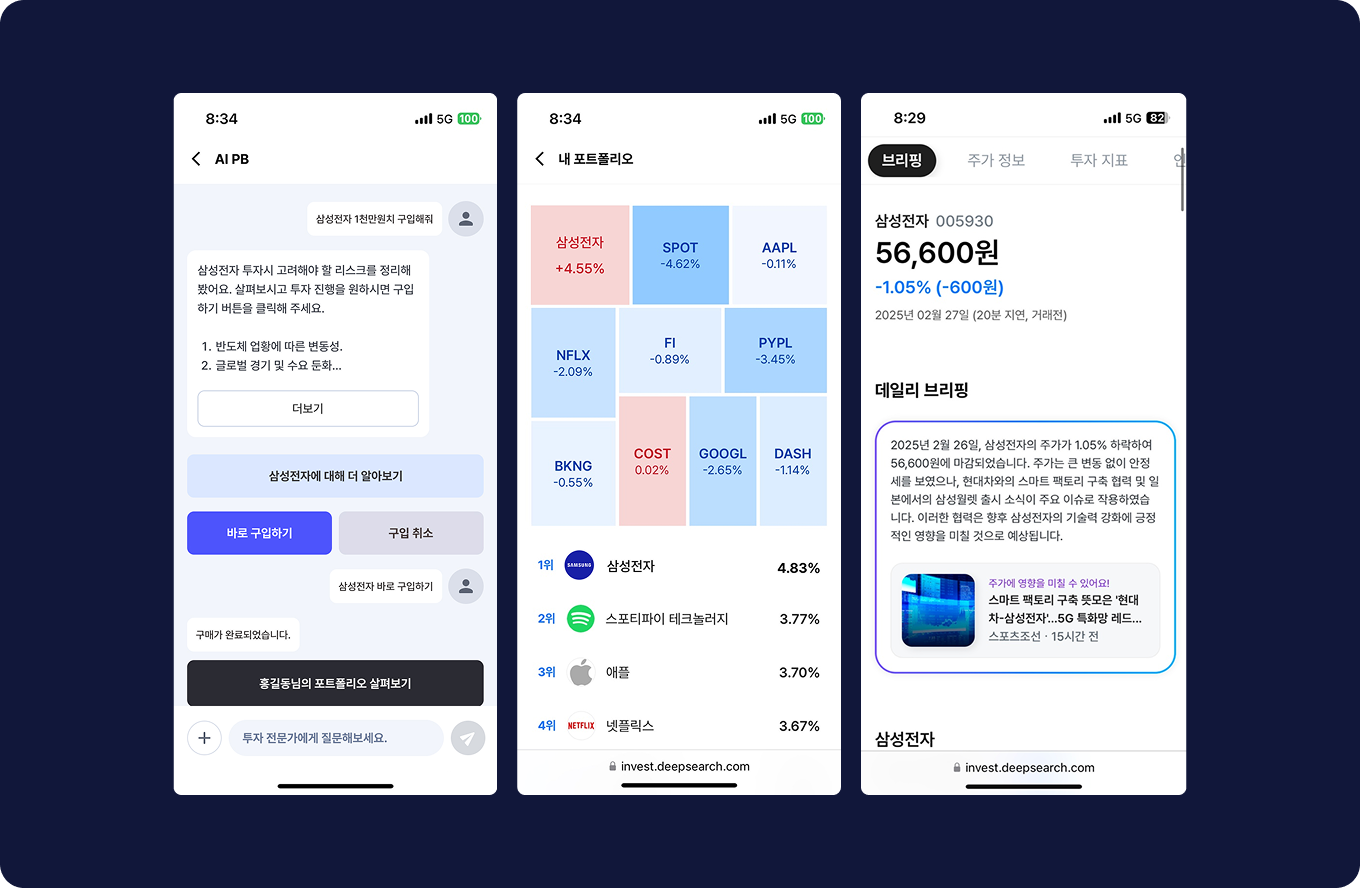 Provides personalized investment advice and portfolio management based on customer/market data. (e.g., Hyundai Motor Securities, LS Securities)